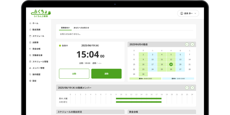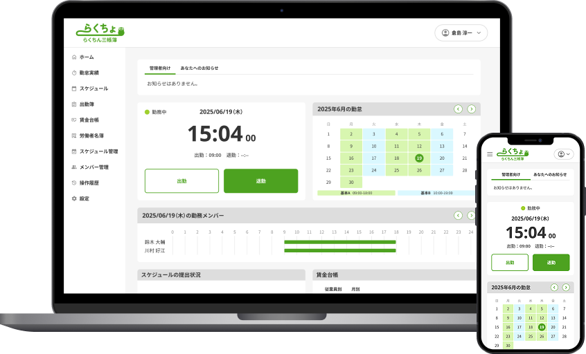 スマホ・タブレットで簡単に打刻可能。出退勤を正確に記録し勤怠管理を効率化します。